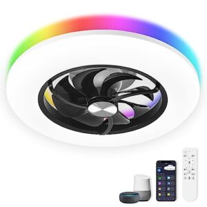 CHANFOK Neo Ceiling Fan with Light- 22 in Smart Low Profile Ceiling Fans with Alexa/Google Assistant/App Control 6 Speed Color Changing Ceiling Fan LED-RGB Back Ambient Ligh 【Dimmable & Light RGB Colors】:Our smart ceiling fan features a plump, slender design, and a brilliant blend of colorful light, making it both a statement piece and a subtle accent for your bedroom....