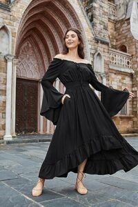 SCARLET DARKNESS Women Renaissance High-Lo Dress Long Sleeve Off Shoulder