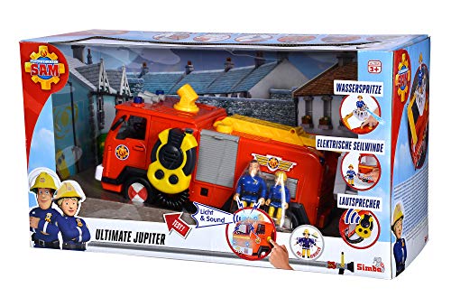 Simba 109251085 Fireman Sam Ultimate Jupiter, fire truck with 2 figures, light and sound, water spray function, winch, from 3 years
