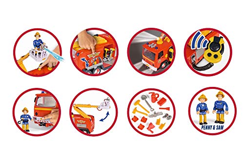 Simba 109251085 Fireman Sam Ultimate Jupiter, fire truck with 2 figures, light