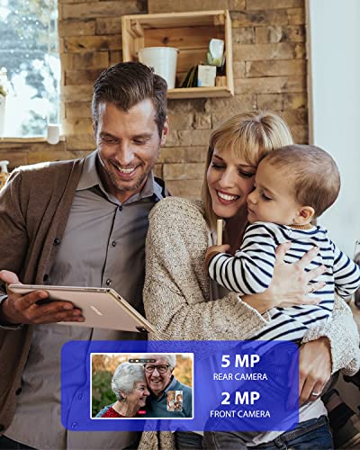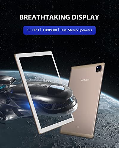 - 【10,1″ FHD IPS SCREEN】: With 1280*800 FHD IPS display, 10.1 in Tablet presents crisp, clear details and vivid colors for a more true-to-life viewing experience from all angles. The tablet supports the use of WiFi, GPS, and Bluetooth, it provides a dual-speaker configuration to provide powerful and shocking sound for your favorite music, games and videos. It also has a 2.0MP+5.0MP dual camera, which is very suitable for taking pictures and videos with friends and family, meeting the basic needs of daily shooting.