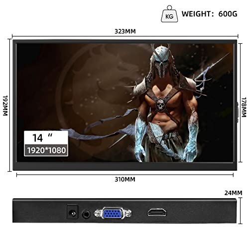 - 3. [Wide Compatibility] The 14 inch portable monitor with HDMI and VGA ports, Compatible with computer laptop, PC, mac, XBOX, PS3 /PS4 /PS5, Raspberry pi,CCTV Camera, etc. Great ideal for extending your screen or playing games on business trip, travel, or home entertainment.