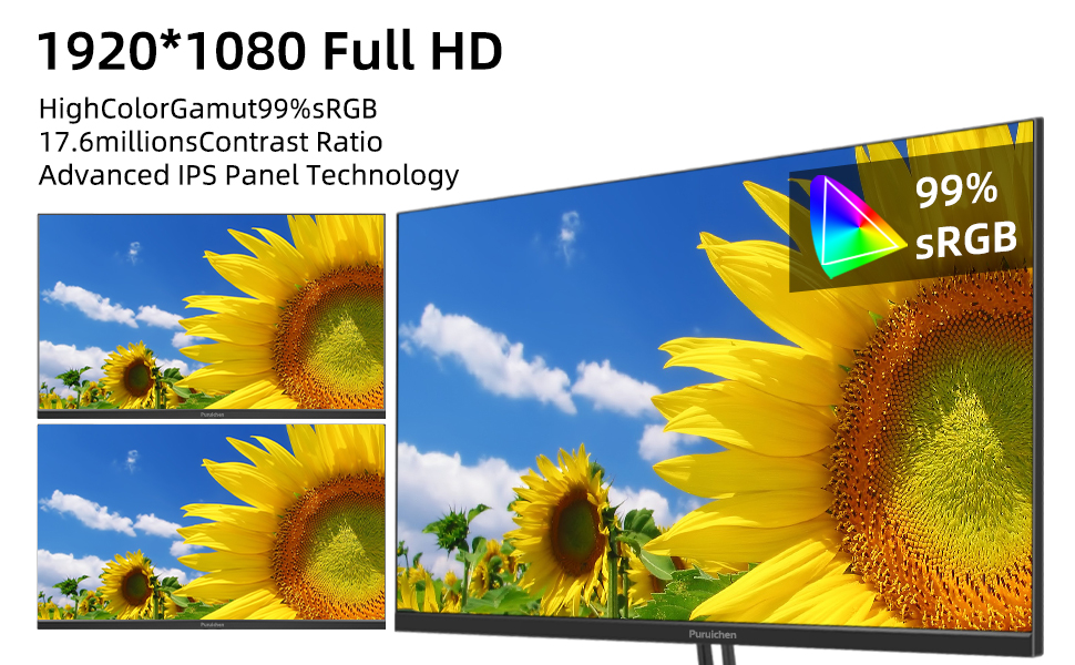 - [Full HD 1080P] 23.8 inch PC screen with a resolution of 1920 x 1080, which provides a clear and vivid image. LED monitor features a 3-sided frameless design for excellent visual performance.