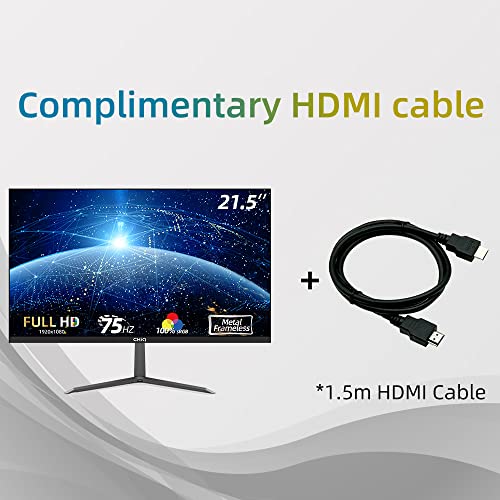 CHiQ 22P610FS 21.5 Inch Full HD (1920×1080) Monitor, 100% sRGB, 75Hz, Anti Glare, Ultra Slim, Metal Frameless,Tilt Adjustment, FreeSync/FPS, Low Blue Light, HDMI/VGA/Audio Outpu