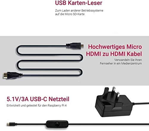【Package Includes】 1 x Raspberry Pi 4B Motherboard(8GB), 1 x 32GB Micro SD Card, 1 x SD Card Reader, 1 x USB SD Card Reader , 4 x heat sink, 1 x Black Case, 2 x Micro HDMI to HDMI Cable, 1 x Cooling Fan, 1 x Power cord with Switch, 1 x Screwdriver, Rich Accessories. [Reminder] The SD card is found in the Raspberry Pi motherboard package.