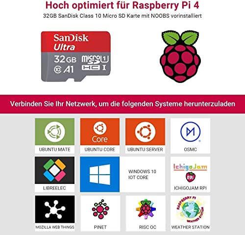SANOOV Raspberry Pi 4 Model B 8GB Starter Kit Motherboard/32GB SD Card / 5V 3A Power Cable with Switch/2 x HDMI to HDMI Cable/Card Reader/Black ABS Case/Cooling Fan/Heat Sink/Screwdive