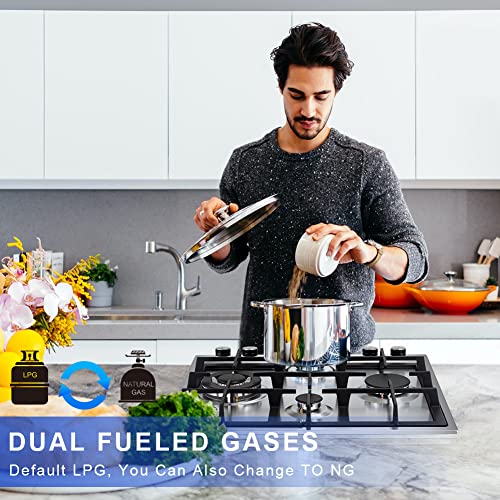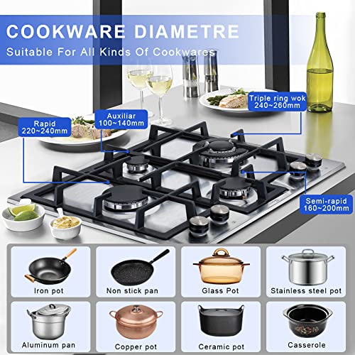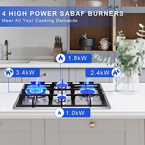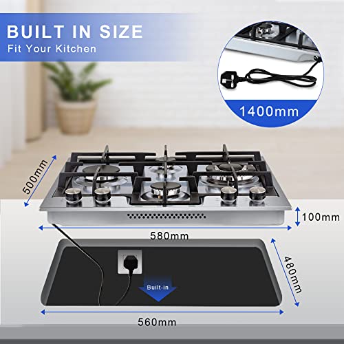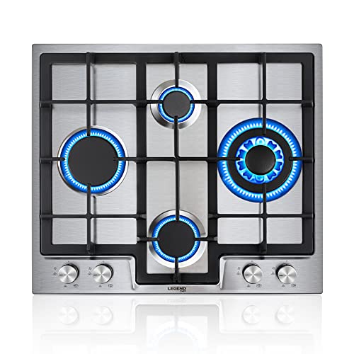 LEGEND CHEF PG6041RS 4 Burners Stainless Steel Gas Hob, 60cm Built -in Gas Cooktop & Wok Burner with FFD, LPG/NG Convertible Gas Cooktops