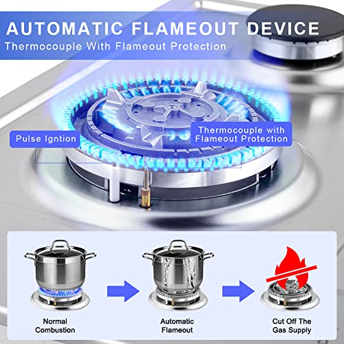 - ➤Built-in & Stylish Design – Made of #304 stainless steel material, it is suitable for diverse styles of kitchen decoration. Built-in gas hob saves space for you. Cut-out size (WxD): 56x48cm
