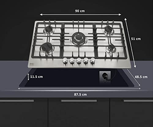 NJ-903S Gas Hob 5 Burner – 90cm Built-in Stainless Steel Cooktop NG/LPG