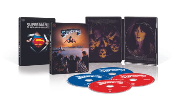 Superman: The Movie At the heart of this Academy Award®-winning*, fan-favorite box-office smash (and for three sequels) is Christopher Reeve’s intelligent, affectionate portrayal of a most human Man of Steel. Reeve, Marlon Brando (Jor-El), Gene Hackman (Lex Luthor) and Margot Kidder (Lois Lane) give performances that fuel the film’s aura of legend. Watching Superman isn’t just like being a kid again. It’s better. Superman II: The Richard Donner Cut Director Richard Donner began shooting Superman II while concurrently filming Superman: The Movie, though the theatrical version of the film was ultimately directed by Richard Lester. In 2006, Donner’s original unique vision was released for the first time. Jor-El (Marlon Brando in footage cut from the theatrical version) appears in key scenes that amplify Superman lore and deepen the relationship between father and son. Lois Lane plots more schemes to unmask Clark Kent as Superman. With so many changes, large and small, including a different beginning and resolution, this version is an eye-opening alternate experience. Superman II: Theatrical Cut Unwittingly released from Phantom Zone imprisonment, three superpowered Planet Krypton criminals (Terence Stamp, Sarah Douglas and Jack O’Halloran) plan to enslave Earth – just when Superman (Christopher Reeve) decides to show a more romantic side to Lois Lane (Margot Kidder). Gene Hackman also returns as Lex Luthor in this sequel that features a top supporting cast, witty Richard Lester direction, and visuals that astound and delight. Superman III: Meet Gus Gorman (Richard Pryor), a naive computer-programming natural. For him a keyboard is a weapon – and, as a result, Superman faces the microelectronic menace of his life. Christopher Reeve reprises his signature role, deepening his character’s human side as Clark Kent sees Lana Lang (Annette O’Toole) at a Smallville High class reunion. And when the Man of Steel becomes his own worst enemy after exposure to Kryptonite, Reeve pulls off both roles with dazzling skill. Relive Superman III with all its heart, heroism and high-flying humor. Superman IV: The Quest for Peace Christopher Reeve not only dons the title hero’s cape for the fourth time but also helped develop the movie’s provocative theme: nuclear disarmament. To make the world safe for nuclear arms merchants, Lex Luthor (Gene Hackman) creates a new being to challenge the Man of Steel: the radiation-charged Nuclear Man (Mark Pillow). The two foes clash in an explosive extravaganza that sees Superman save the Statue ofLiberty, plug the volcanic eruption of Mount Etna and rebuild the demolished Great Wall of China. Superman: The Movie (Steelbook 1) Steelbook Finishes • Full Gloss On Disc Special Features • Commentary by Director Richard Donner and Creative Consultant Tom Mankiewicz • Taking Flight: The Development of Superman • Making Superman: Filming the Legend • Superman Screen Test • Music-Only Audio Track • Theatrical Trailers & TV Spot Superman II: Theatrical Cut & Donner Cut (Steelbook 2) Steelbook Finishes • Spot Gloss on Title Treatment and Superman (front) • Spot Gloss on Title Treatment and Superman logo (reverse) Theatrical Cut – On Disc Special Features • Introduction by Director Richard Donner • Commentary by Richard Donner and Tom Mankiewicz • Superman II: Restoring the Vision Featurette • Deleted Scenes Donner Cut – On Disc Special Features • Commentary by Director Richard Donner and Creative Consultant Tom Mankiewicz • Introduction by Richard Donner • Featurette Superman II: Restoring the Vision • Additional Scenes • 8 1940s Famous Studios Superman Cartoons: Japoteurs, Showdown, Eleventh Hour, Destruction, Inc., The Mummy Strikes, Jungle Drums, The Underground World and Secret Agent Superman III (Steelbook 3) Steelbook Finishes • Full Gloss On Disc Special Features • Commentary by Ilya Salkind and Pierre Spengler • The Making of Superman III [1983 TV special] • Additional Scenes • Theatrical Trailer Superman IV: The Quest for Peace (Steelbook 4) Steelbook Finishes • Full Gloss On Disc Special Features • Commentary by Co-Screenwriter Mark Rosenthal • Additional Scenes • Theatrical Trailer Premium Extras (Steelbook 5) Superman ’78 #1 Collectible Comic Book Certificate of Authenticity Photo Book 3D ‘Phantom Zone’ Lenticular 5 Film Steelcase