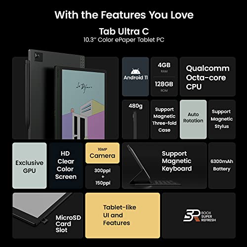- Thanks to an exclusive GPU and BOOX Super Refresh Technology, you can enjoy a responsive color ePaper screen and increased efficiency.