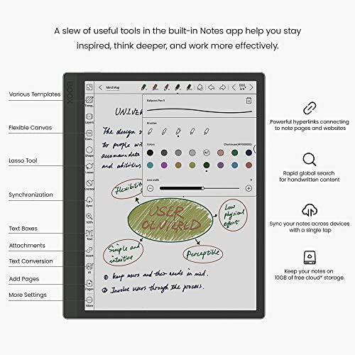 Screen: 10.3″ Kaleido 3 (4,096 colors) Carta 1200 glass screen with flat cover-lens