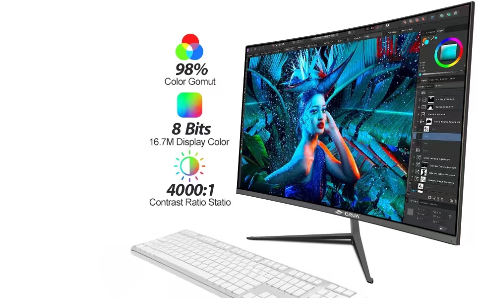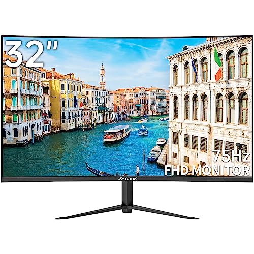 CRUA 32 Inch Curved Computer Monitor, Ultra-Thin Zero Frame, 75Hz FHD 1920x1080p
