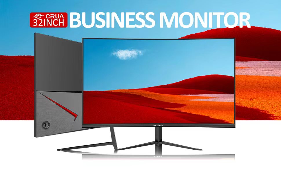 CRUA 32 Inch Curved Computer Monitor, Ultra-Thin Zero Frame, 75Hz FHD 1920x1080p Desktop Monitor, Business Computer Monitors HDMI/VGA, Home Office Business PC Monitor(VESA100*100)