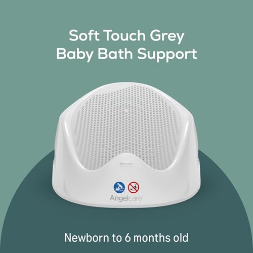Angelcare Soft Touch Baby Bath Support -Grey- Water Level Indicator, Non-Slip, Comfortable & Safe for Newborns & Infants up to 6 Months