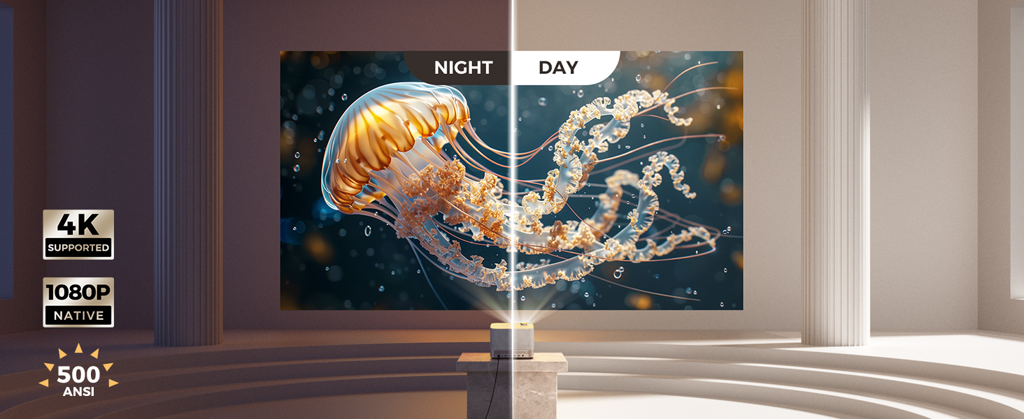 - All-ln-One Projector, Dust-Proof Design : AURZEN movie projector is the first projector 4K+ with all the common use functions. Get it to achieve a big-screen smart TV, astonishing sound, excellent picture quality, and smart system with advanced automation technology, bringing you a true private cinema. And the full sealed design can prevent dust and longer the lifespan of the projector