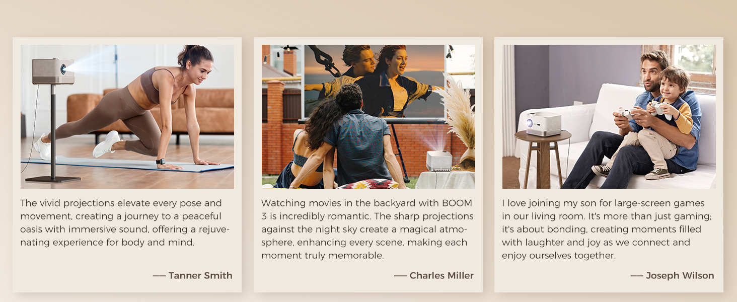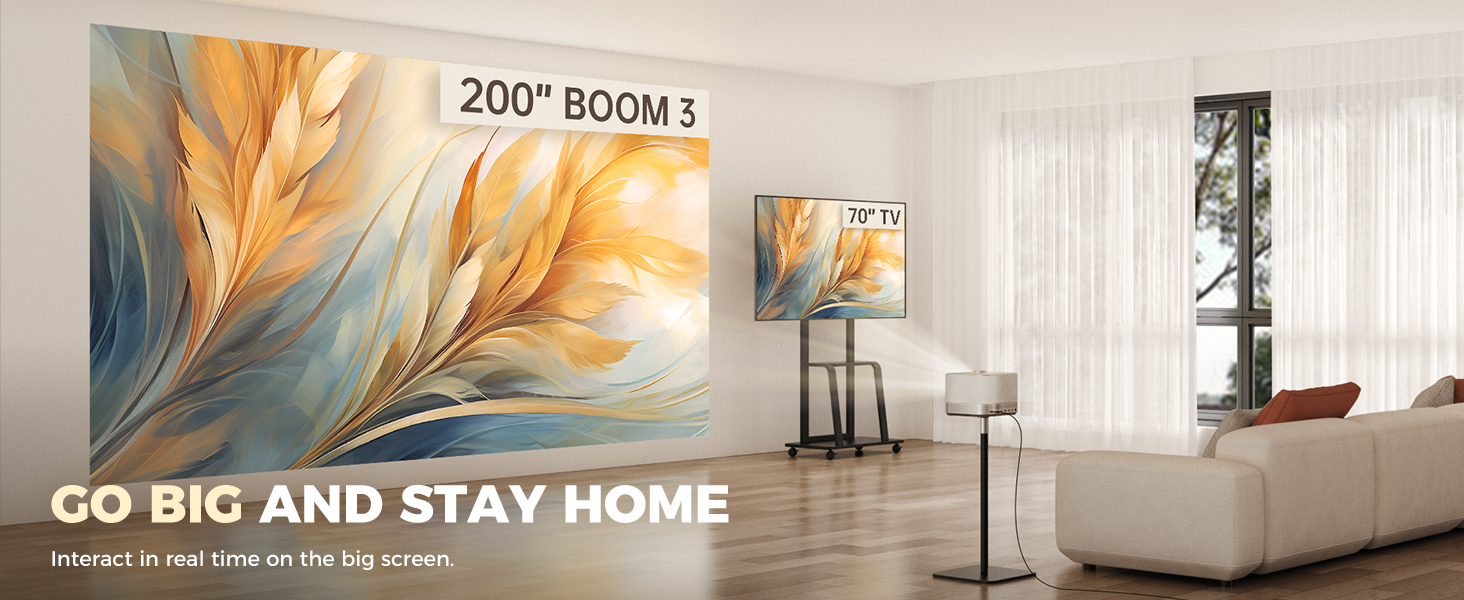 - Multiple Installation Methods, Various Device Connections : The BOOM 3 LED projector supports ceiling mount, tabletop mount, tripod mount, and wall mount with 1/4'' screw hole at the bottom, meeting different projection needs. Additionally, it comes with 2 HDMI ports, 2 USB ports, and a 3.5mm headphone jack, making it compatible with Fire TV Stick, Roku, laptop, iPhone, Android, iPad, USB Drive, Switch/PS5, and more. Perfect for indoor and outdoor movies, small meetings, outdoor camping, gaming, parties, learning, and business. Get the BOOM 3 and have it all