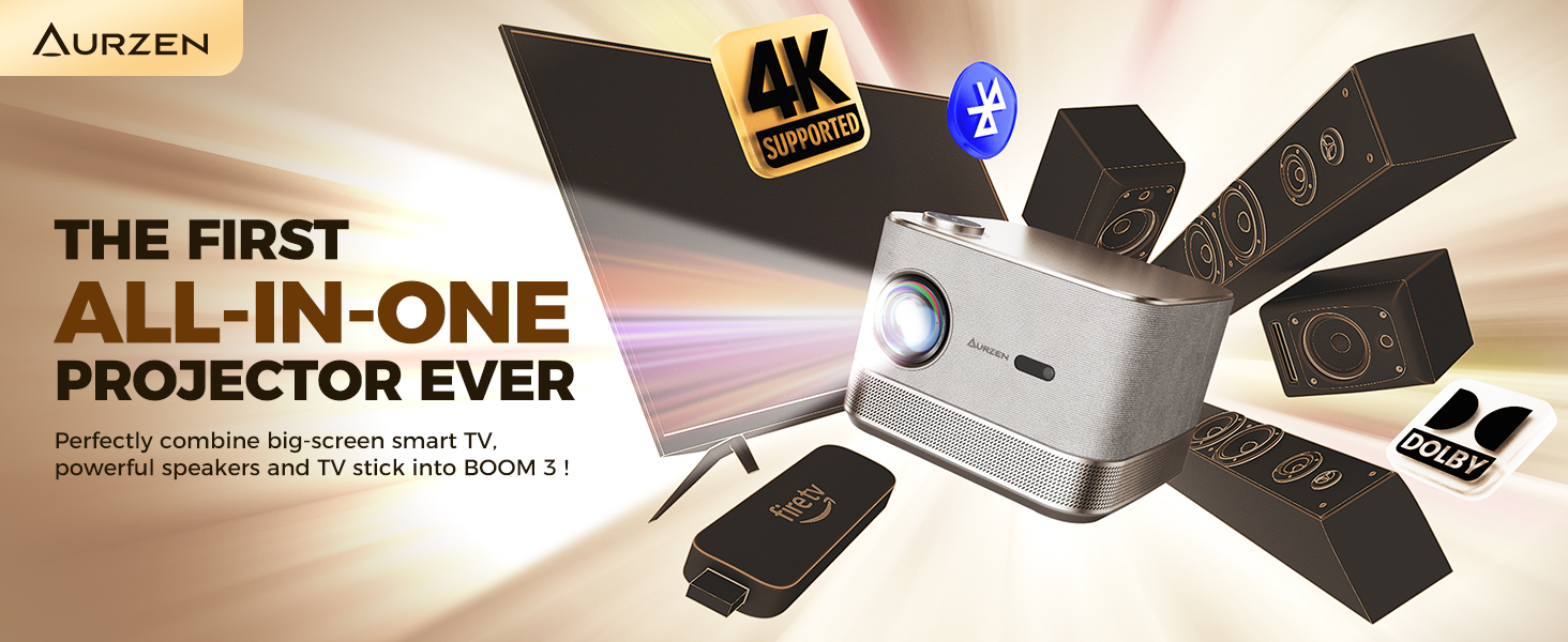 All-ln-One Projector 4K, AURZEN Boom 3 Smart Projector