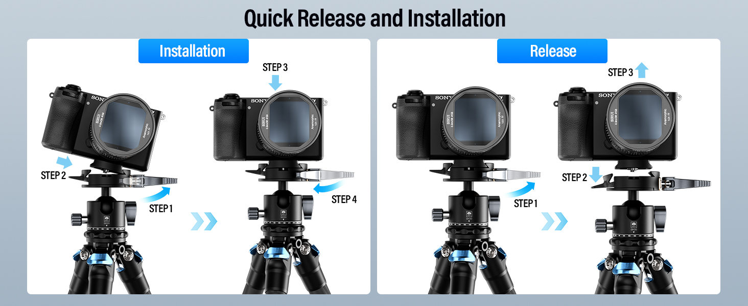 - Tripod Ball Head with Arca-type QR Plate: The tripod head mount comes with an Arca-type quick-release plate, making equipment attachment and detachment effortless. Enjoy the convenience of rapid transitions and compatibility with various camera types. (Due to variations in specifications among Arca-type quick-release plates from different manufacturers, we recommend using the quick-release plate provided in our kit for optimal compatibility).