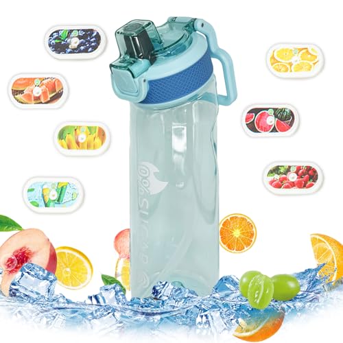 Air Water Bottle with Flavour Pods, 700ml Starter Up Set BPA Free Drinking Bottles with 7 Random Flavour Pods Scented 0 Sugar Calorie, Water Cup with Straw for Gym School Outdoor (Blue)