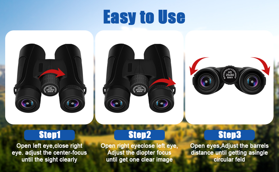 - 5.【Waterproof and Fog-proof Binoculars】Waterproof and fog-proof design keeps moisture, dust, and debris out, ensuring clear vision in any weather condition. Versatile binoculars perfect for everyday use and adaptable to any terrain or environment.