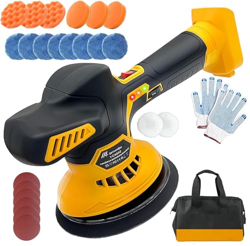 Cordless Buffer Polisher, Car Buffer Polisher 145mm Compatible with Dewalt Battery,6 inch Car Polisher 6 Variable Speed 6000RPM,New Upgrades ,Buffers Polishers Kit for Car Detailing/Waxing(No Battery)