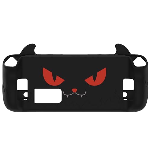 Cute Demon Protective Case for Steam Deck LCD & OLED, Kawaii Anti-Slip Protector for Steam Deck OLED with Thumb Grip Caps & Trackpads Stickers & Back Button Enhancement Set – Black