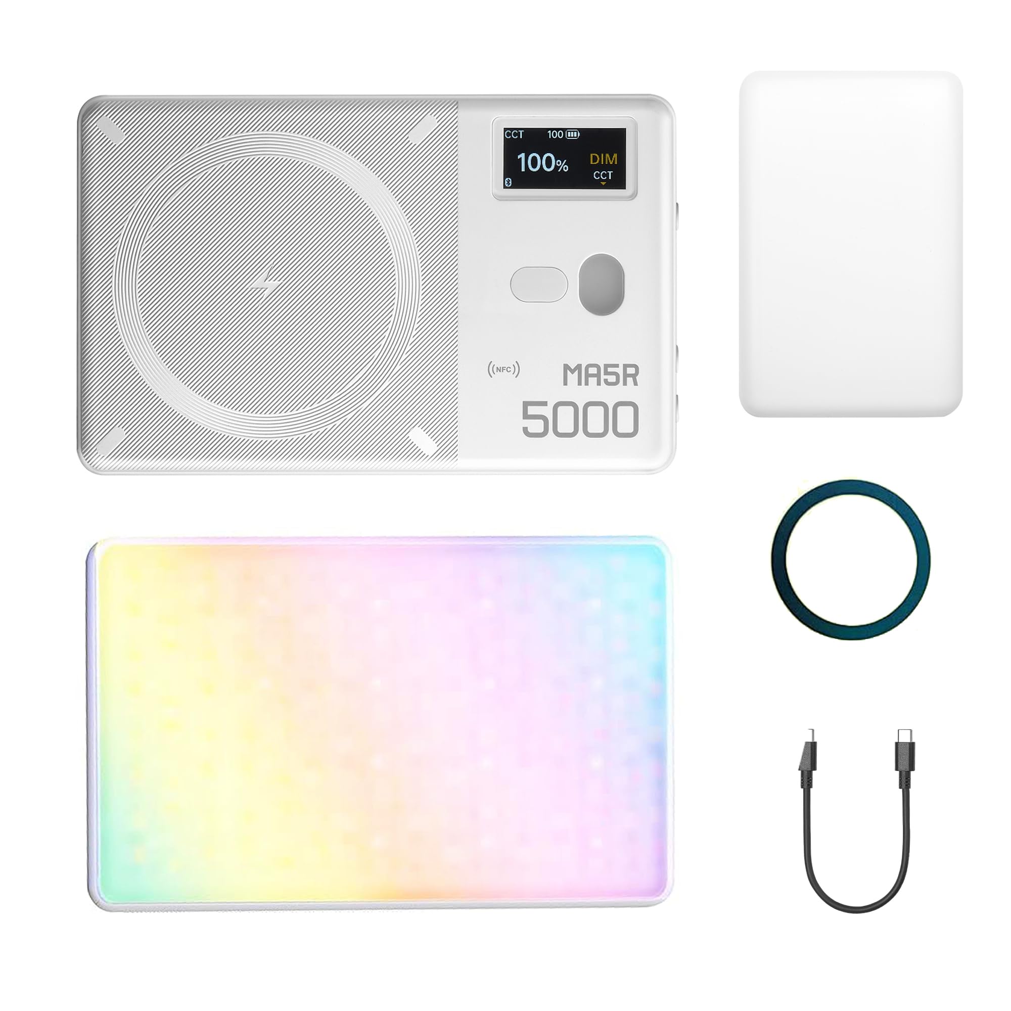 Godox MA5R RGB LED Video Light 5W 1800K-10000K Magnetic Charging Full-Color LED Fill Light Supports NFC APP Control Built-in Power Bank (White)