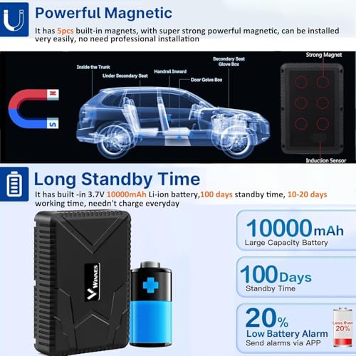 GPS Tracker No Subscription Fee Real Time Tracking Magnetic Waterproof GPS Tracker Devices 120 Days Standby Time 10000mAh Rechargeable GPS Car Tracker With Multiple Alarms and Free APP/Web
