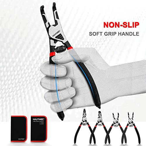 HAUTMEC 4PCS High Leverage Snap Ring Pliers Set,7 inches Internal/External Heavy