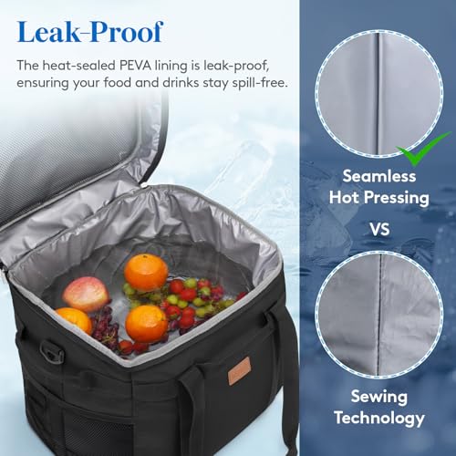 Lifewit 40L Soft Cooler Bag with Hard Liner, Large Insulated Picnic Lunch Bag Box Soft-Sided Cooling Bag for Camping、BBQ、Family Outdoor Activities, Black