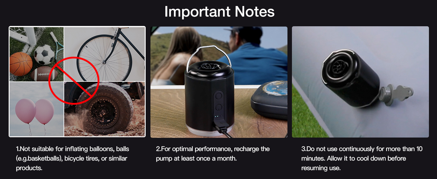 Our product features superior battery life. A single charge can power up inflatable toys 22 times, swimming rings 23 times, sleeping pads 42 times, and air pillows 155 times. It's a versatile pump that adapts to all your outdoor needs—your ultimate assistant for an active lifestyle.