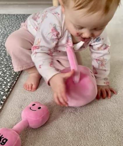 Plush Toy Dumbbell and Kettlebell Set – Baby Rattle – Suitable for Newborn Babies – Plush Toys for Babies Infant Girls Boys Baby Gift – Sensnory Toy (Candy Château Pink)