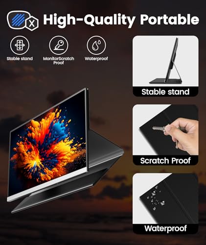 - Vivid Full HD Clarity: The 15.6-inch portable monitor with 1920×1080 resolution provides crisp, lifelike visuals, perfect for work, gaming, or streaming. The high-quality image quality ensures that there will be no lag or lack of clarity when you work, play games, or watch movies on the monitor, providing you with a truly immersive viewing experience.
