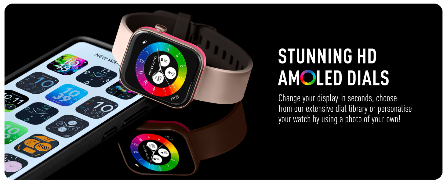 - Experience Reflex Active in ultra-high definition with our Series 40 AMOLED smart watch. Enjoy an amazing collection of exclusive dials on the 1.85'' AMOLED display with exceptional clarity and incredible colour reproduction. Innovative additional benefits include Always-On display, meaning you no longer need to touch your watch or lift your arm to activate the display and our Dual-Time feature shows the time home and away, to ensure you always keep on track while traveling.