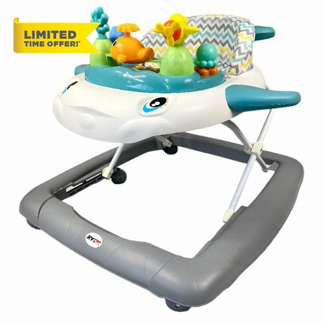 RYDR Folding Baby Walker with 5 Sensory Toys, Musical Sounds Nursery Rhymes, 3