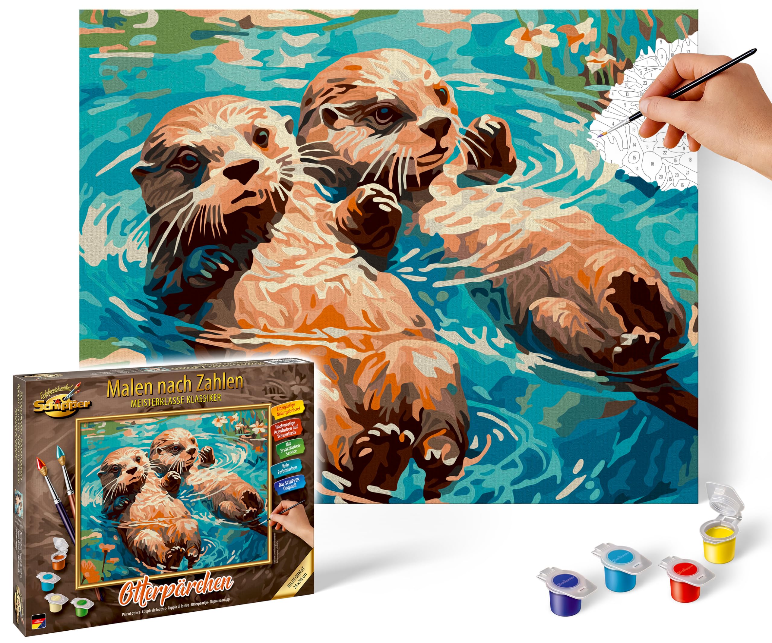 Schipper 609240917 Numbers-Otter Couple Pictures for Adults, Includes Brush and Acrylic Paints, 24 x 30 cm