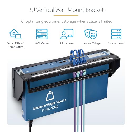 StarTech.com 2U Vertical Wall-Mount Bracket For 19Inch Rack Mountable Equipment, 121lb/55kg Capacity, For Patch Panels/Servers