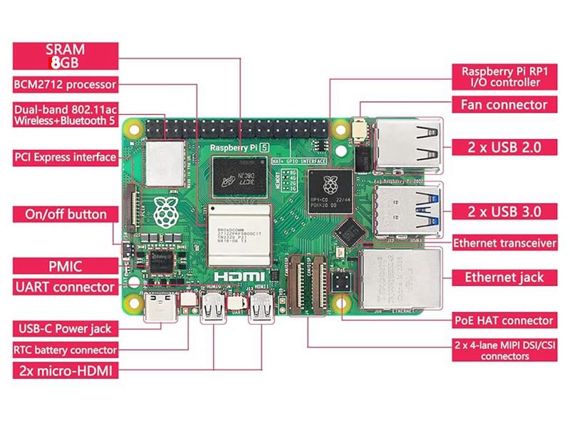 - 【 New platform, new chipset 】 The Lastest Raspberry Pi 5 comes with three new chips, and when combined, its performance can soar! With 2–3× the speed of the previous generation, and featuring silicon designed in‑house for the best possible performance, we’ve redefined the Raspberry Pi experience