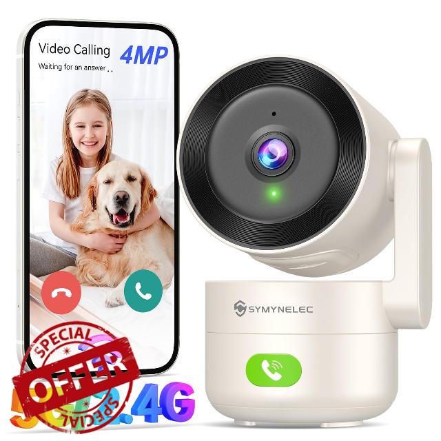 SYMYNELEC Indoor Camera with 2.4/5GHz WiFi: 2K 4MP Pet Dog Cameras with App
