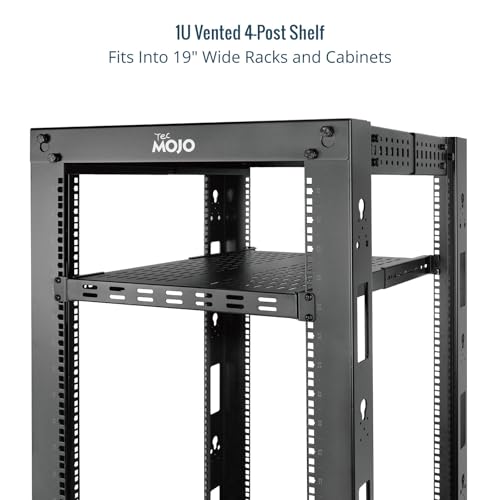 Tecmojo 1U Adjustable Vented Server Rack Mount Shelf – 13.8″ (350mm) -23.6″ (600mm) Depth, Supports up to 242 lbs – Universal Tray for 19″ AV/Network Equipme