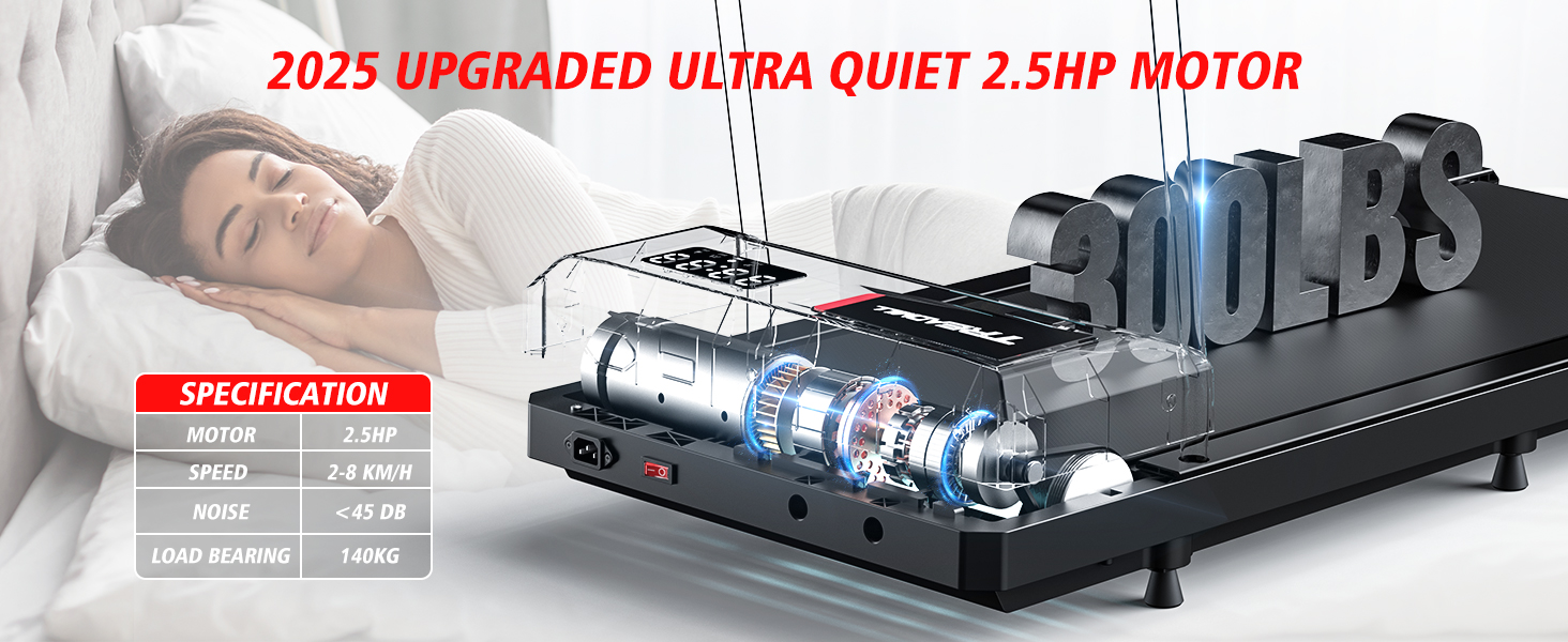 - . – With 2.5HP super power and low noise motor, the indoor walking treadmill under desk is an ideal fitness equipment for home and office, without worrying about interference with yourself and others when exercising, creating a quiet exercise environment. The new upgraded motor dissipates heat faster and lasts longer than other motors, so don't have to worry about the motor overheating and damaging the treadmill anymore