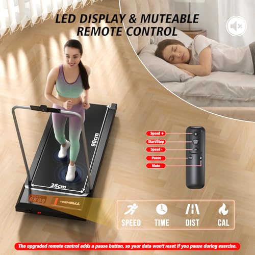 - & – Intelligent voice control is one of our features, you can control the smart treadmill with your hands free, in addition we offer a remote control with a wrist strap, you can also pair with our fitness app to control the walking treadmill! LED display clearly shows time, speed, distance, and calories for better tracking your sports performance in real time, and make your exercise data clear at a glance