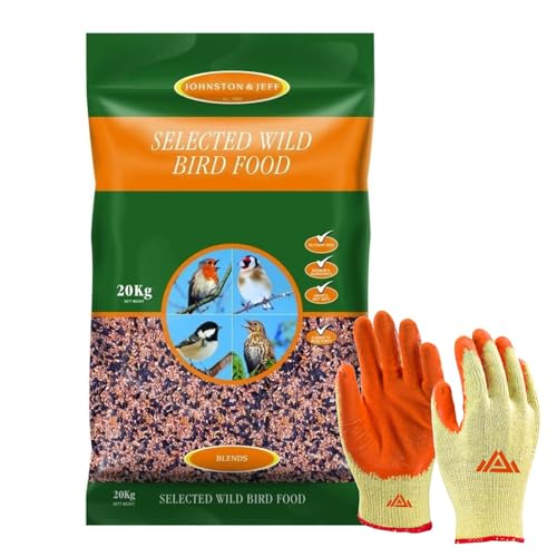 Wild Bird Food 20kg – No Mess, No Grow Bird Seed Mix for Wild Birds – Premium Bird Feed for Small Garden Birds – All Season Bird Seeds Perfectonish Gloves Included