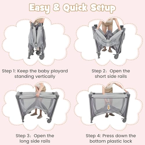 - Kids-friendly Details & Lockable Wheels: Practical handles and beautiful hanging toys, adjustable canopy and rounded corners make it safer and more fun for your baby to rest and play. This baby crib is equipped with lockable wheels, which can facilitate daily movement in the bedroom, living room and so on.