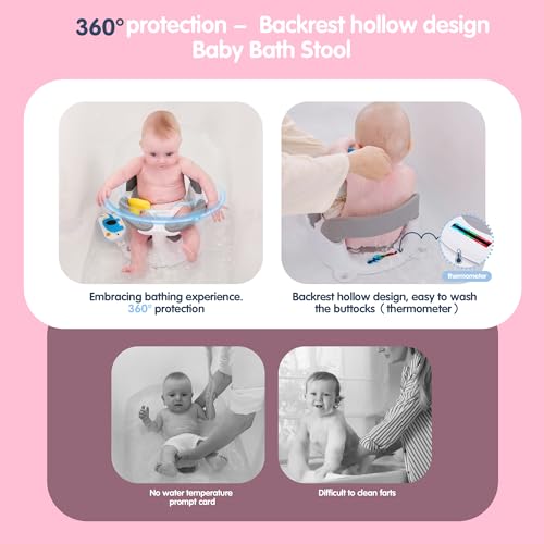 - backrest hollow design,easy to wash the buttocks,Includes a convenient thermometer sticker to monitor water temperature, ensuring a safe and comfortable bath for your baby every time.