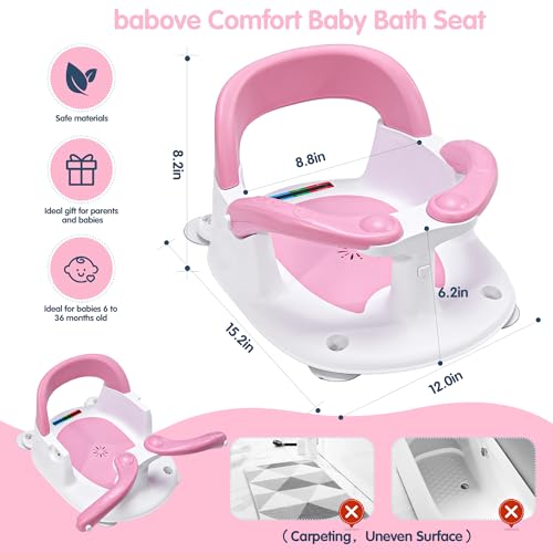 babove Baby Bath seat for Babies 6 Months & up with Thermometer Sticker, one-Touch Button for Easy armrest Opening, Baby sit up Bath Chair (Pink)