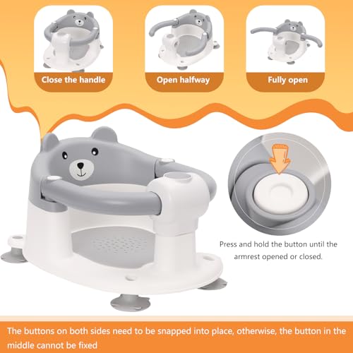 - 【Moderate size】The bath seat can be placed in various bathtubs. Simple assembly steps, easy to use and learn. Suitable for babies from 6 months to about 18 months old who can sit up independently. The size is about 41*32*34 cm. The baby bath seat can also be used as a game chair, bath chair and feeding chair