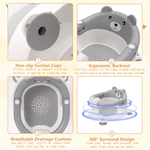 Baby Bath Seat Baby Shower Chair with Non-Slip Suction Cup Portable Babies