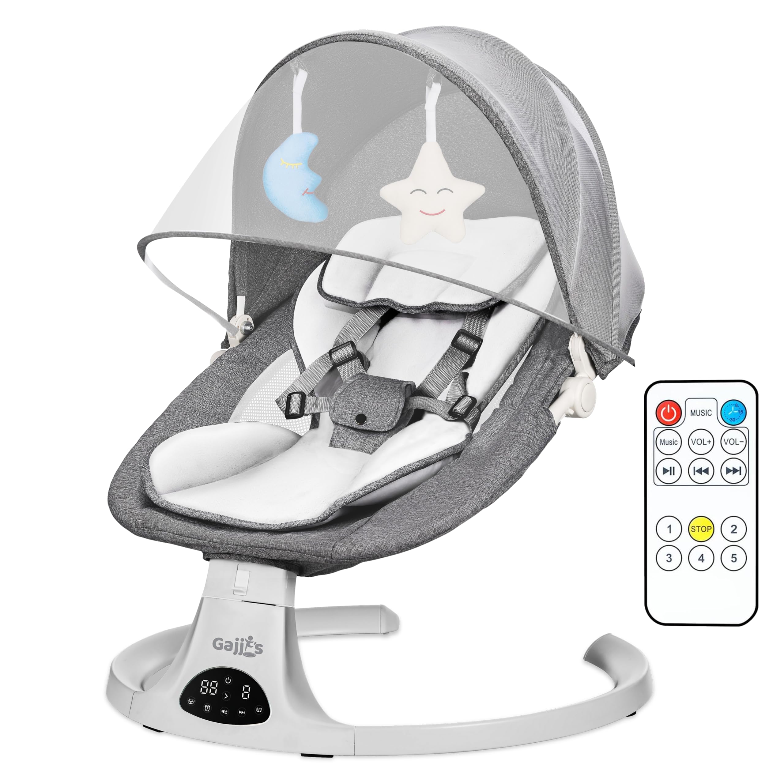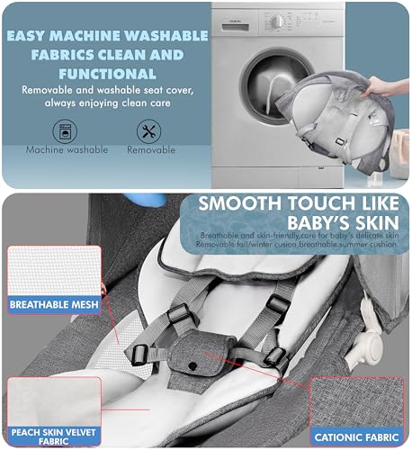 - Perfect Present for Newborn Baby: This baby rockers comes in pretty colors, comfortable fabrics, stable construction, 5 swing speed, 10 built-in music and Bluetooth support, 3 timer settings, detachable seat cushion and mosquito net, and 2 plush toys to engage baby's senses and hand-eye coordination, this baby rockers and bouncers is perfect as a present for baby shower